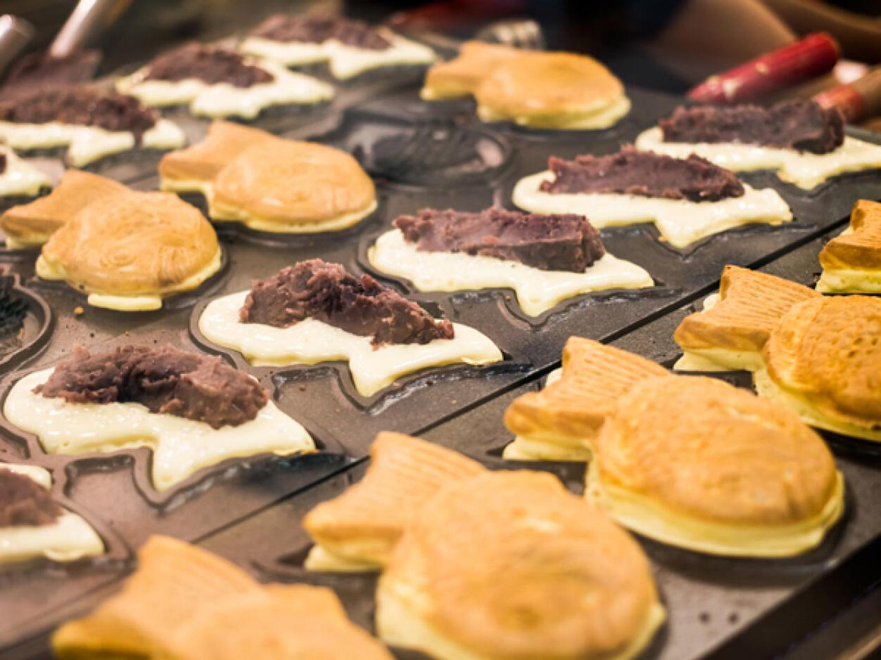 A taiyaki is a traditional Japanese pastry typically made with waffle batter and stuffed with an assortment of fillings, ranging from a sweet and savory red bean paste to tasty breakfast sausage.